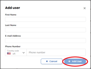 - Fill out the corresponding form that appears on screen and click 'Add User' once complete.