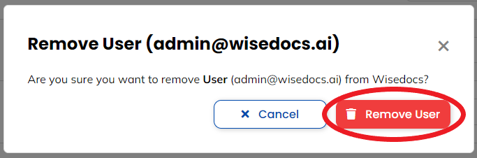 - A confirmation message will pop up. To confirm, click ‘Remove User’ on the pop-up.