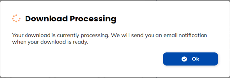 If your Doc List output is going to take a while to download, when you click the Download Doc List button, a pop-up notification will appear letting you know there will be a wait.